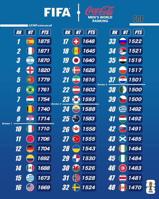 Y con estos dos importantes resultados con los que cerró las Eliminatorias rumbo al Mundial ‘Estados Unidos, México y Canadá 2026’, LaTri pudo trepar un puesto y ahora ubicarse en la 24ta posición del ranking FIFA, quedando a un solo puesto de meterse en la zona del Bombo 2 de cara al sorteo para la fase de grupos de la Copa del Mundo.