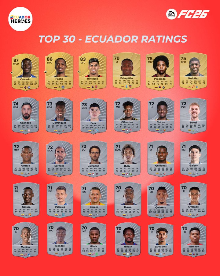 Va a salir a la venta para el público en general este viernes 26 de septiembre y ya se han confirmado cuáles son los 30 futbolistas ecuatorianos mejor valorados en el popular videojuego ‘Football Club 26’ de la empresa EA Sports.